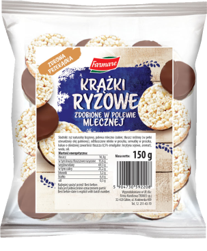 Krążki ryżowe zdobione w polewie mlecznej wypiekane są z całych ziaren ryżu i polewane pyszną mleczną czekoladą. Stanowią idealne połączenie chrupkiego wafla ryżowego z apetycznym i słodkim smakiem czekolady. Doskonale sprawdzą się jako sycąca przekąska dla każdego, a dzięki zbiorczemu opakowaniu ich smakiem możesz cieszyć się jeszcze dłużej.